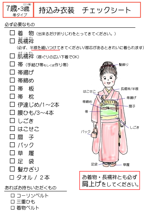 衣裳の持込みの場合は、チェックリストをご覧頂きご確認お願いいたします。
