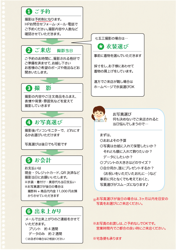 撮影当日~3ヶ月以内にお願いいたします。期限内に選べない場合はご相談ください。
