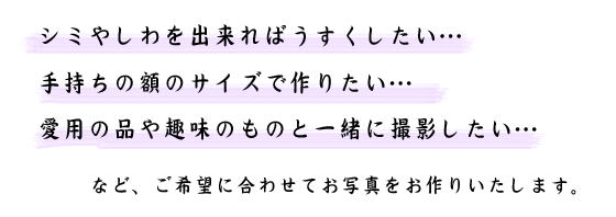 「自分で写真を用意して、お子様などに渡しておきたい」と残されたご家族のためにご用意される方が増えています