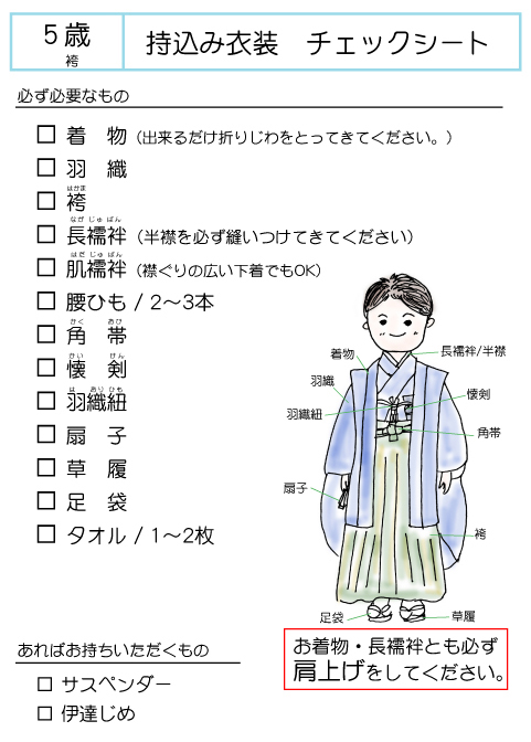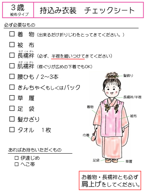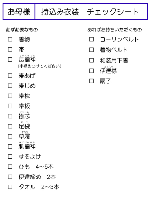 衣裳の持込みの場合は、チェックリストをご覧頂きご確認お願いいたします。
